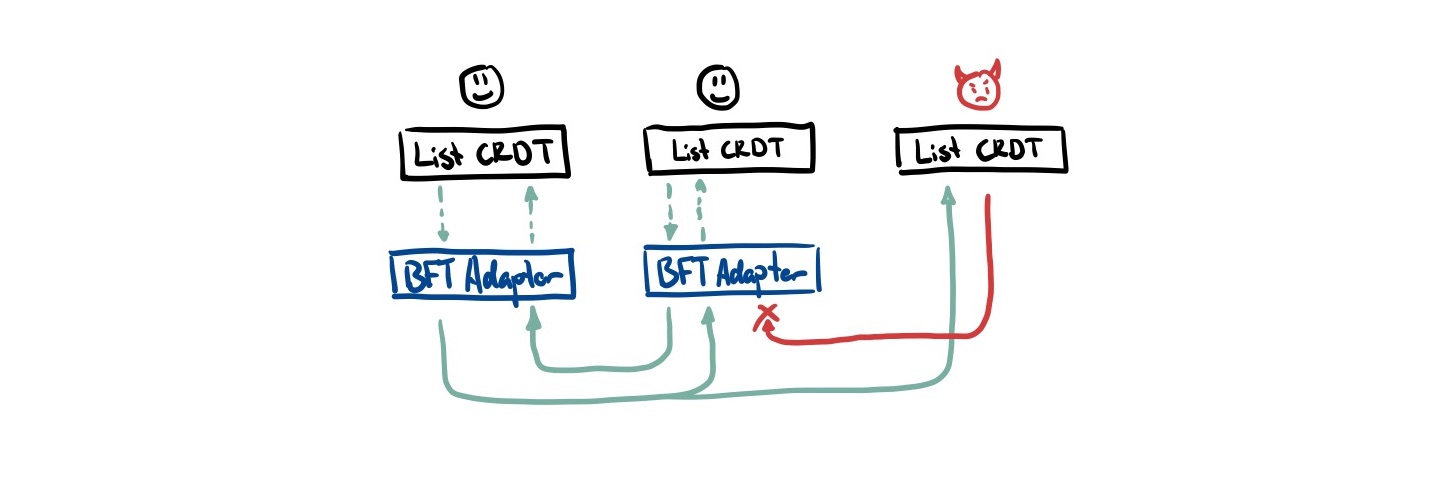 For those coming from a more traditional distributed systems context, I will clarify that BFT means something different from a consensus context. Traditionally, this means getting some nodes to agree on a particular value. However, because CRDTs focus more on collaboration than consensus, we just want to prevent Byzantine actors from disrupting the functioning of the system. Byzantine actors can still send a bunch of ‘valid’ updates that may be unwanted. Imagine you sent a Google Docs link to a group of people and one of them is mucking around and inserting a bunch of images and removing information from the document. These would all be considered ‘valid’ operations in the sense that a ‘correctly’ functioning node could have done the same thing. ↩