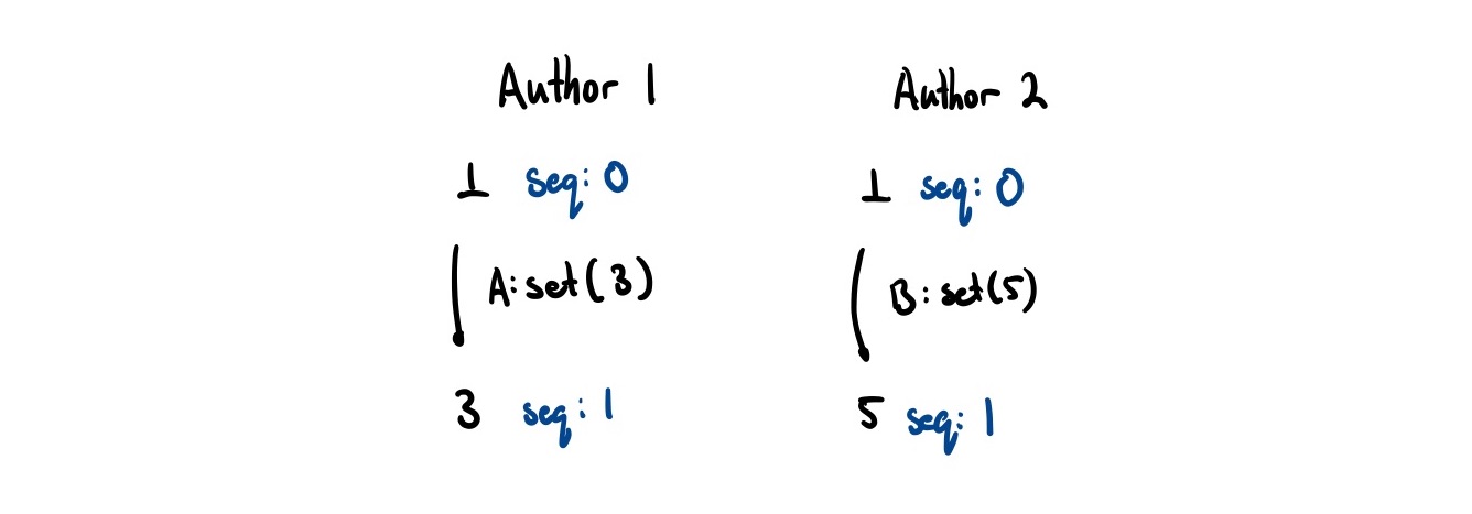 But we can’t figure out this causality information from just sequence numbers alone. If an event A causes another event B to happen, then a.seq < b.seq. However, we don’t know the converse. That is, if a.seq < b.seq, we cannot say that A caused B to happen.