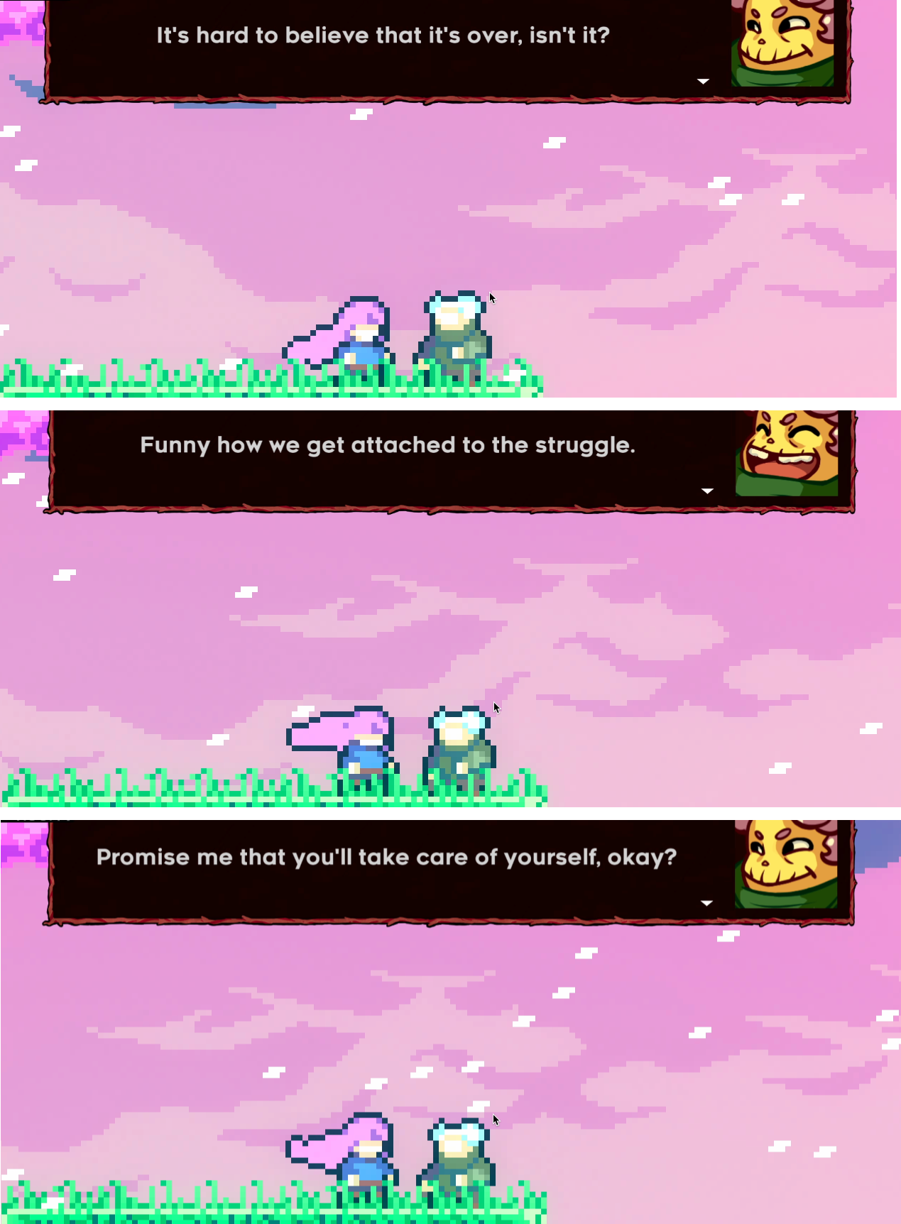 I think I’m really glad that things ended where they did. We let it go before too much hurt was caused in either direction.