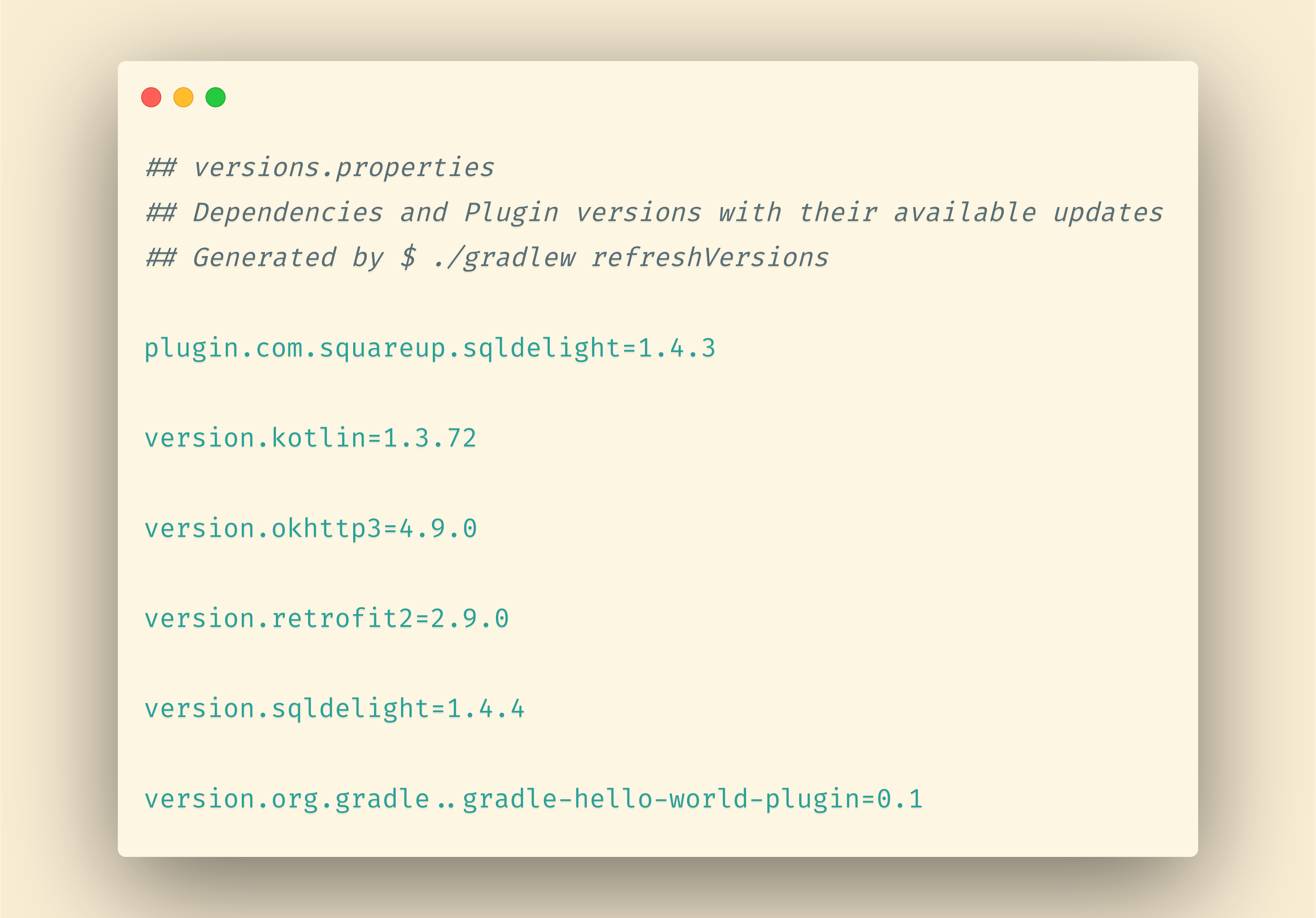 Instead, gradle refreshVersions stores all the versions in one place in a proper file format: