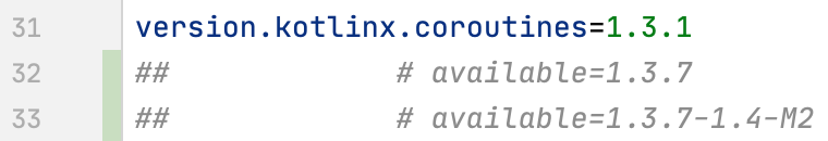 After you have run the refreshVersions task, you will see the available updates as comments: