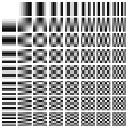 The top-left block is the ‘basic hue’ and is often called the DC component. The other 63 blocks are called AC components.