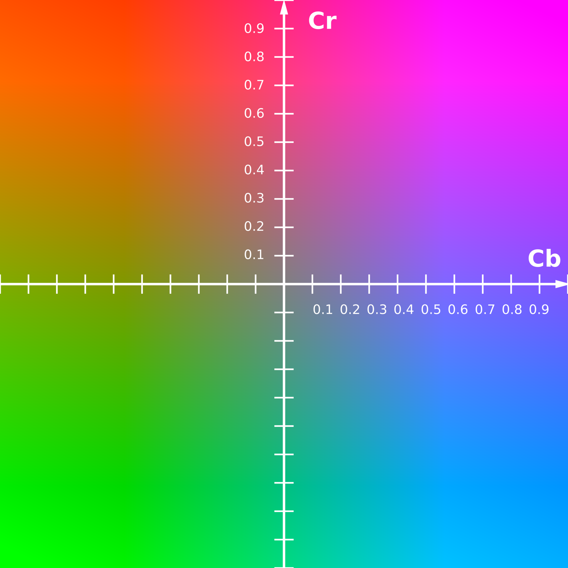 - Cb and Cr normally have a range of -0.5 (negative amount of the colour) to 0.5 (positive amount of the colour