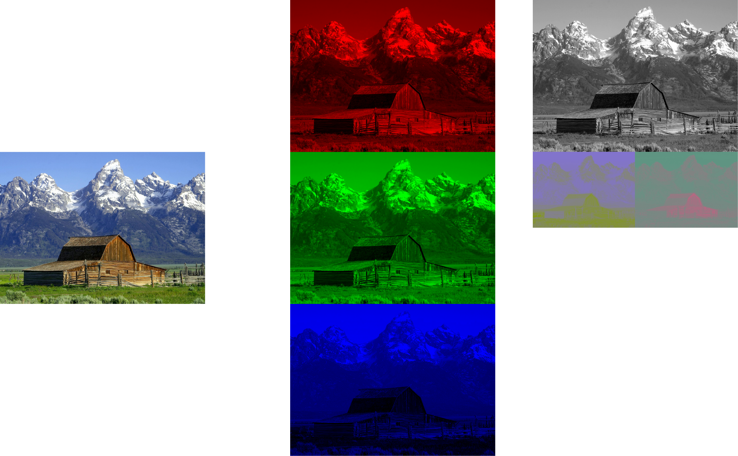 - However, the image’s brightness information is spread evenly through the R, G, and B channels.