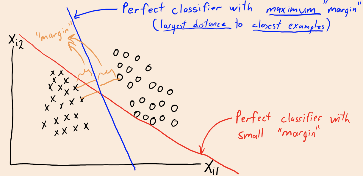 An SVM is just Hinge loss with L2-regularization f(w)=∑i=1nmax{0,1−yiwTxi} They can also be viewed as ‘maximizing the margin’: